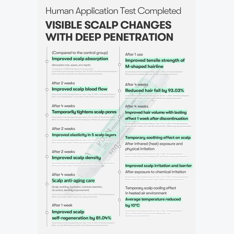 Notice your scalp peeking through your part line? This ampoule dives deep to recharge tired, thinning hair from the root. Its microneedling-inspired formula gently stimulates follicle activity — so your scalp gets back to work and hair starts looking fuller, faster.